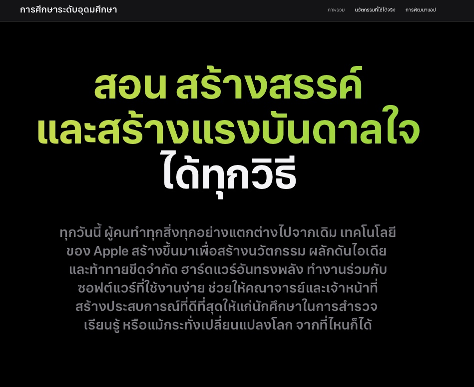 ดูเพิ่มเติมได้ที่ https://www.apple.com/th/education/higher-education/innovation-in-action/