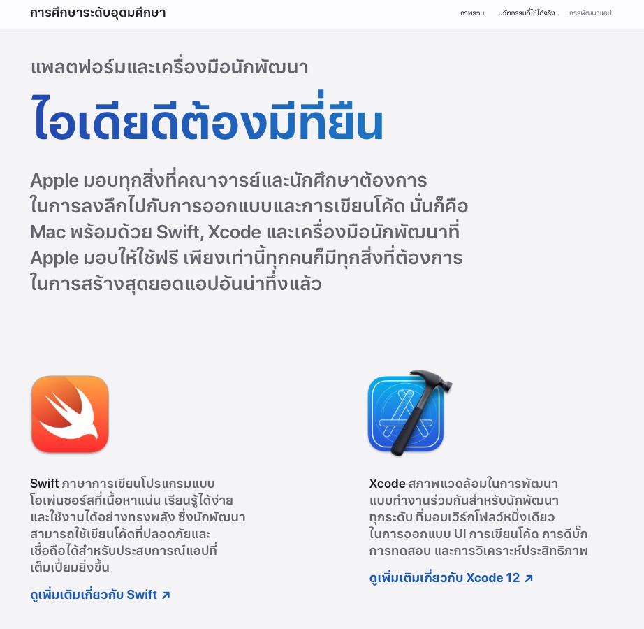 Apple เปิดตัว 2 เว็บไซต์เพื่อสนับสนุนการศึกษาระดับอุดมศึกษาในไทย