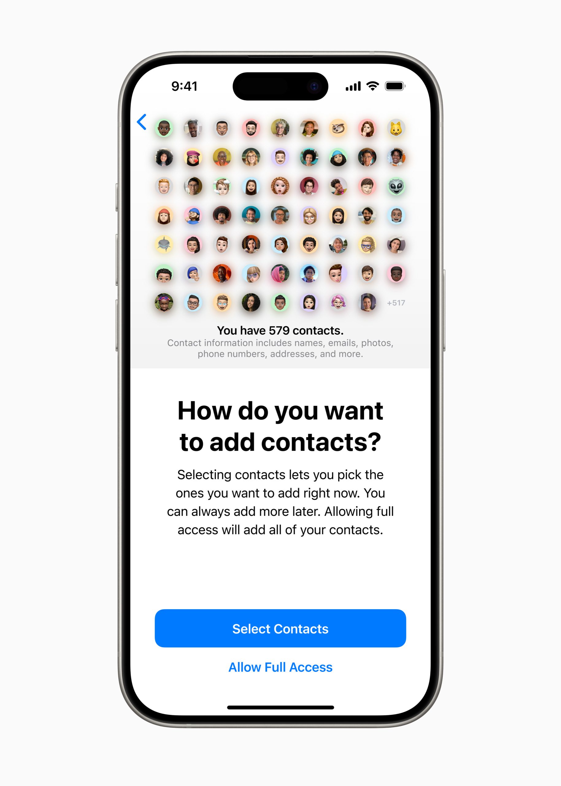 นอกจากนั้นผู้ใช้ยังสามารถเลือกแชร์เฉพาะผู้ติดต่อบางคนกับแอปได้อีกด้วย