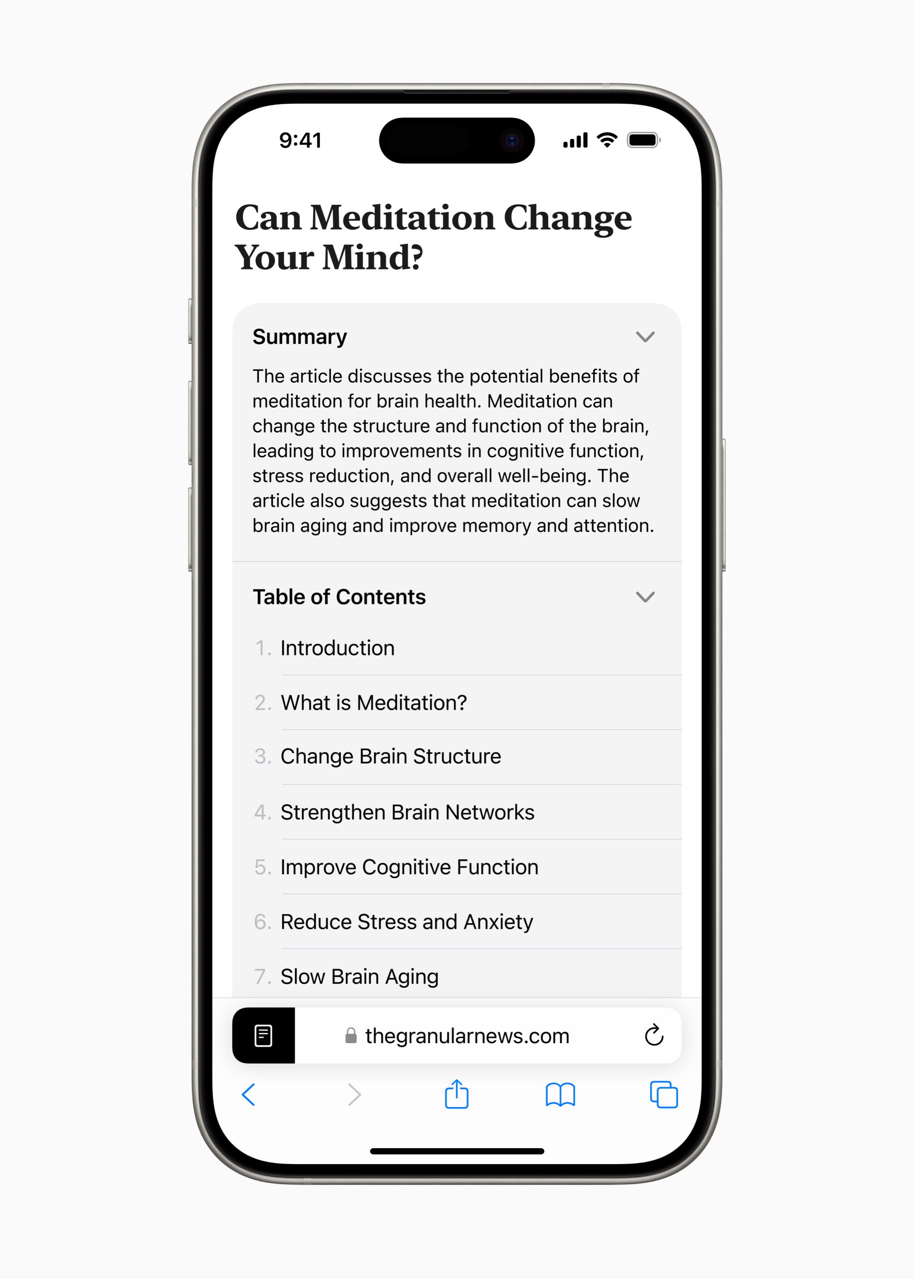 Safari ใน iOS 18 มพาร้อมฟีเจอร์ Highlights ที่จะสรุปข้อมูลสำคัญของเว็บนั้น ๆ ออกมาได้เลย โดยใช้ Machine Learning เช่น สาระสำคัญเนื้อหาของเว็บ, ตำแหน่งที่ตั้ง, เล่นเพลง และอื่น ๆ