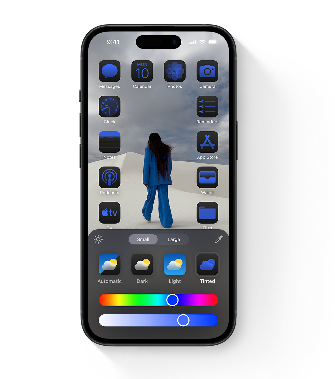 ผู้ใช้สามารถตั้งค่ารูปแบบการแสดงไอคอนแอปได้ว่าจะให้เปลี่ยนเป็นโทนสีเข้ม ตาม Dark Mode หรือไม่