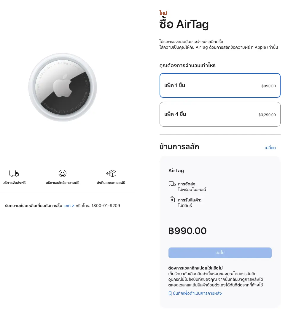 - AirTag แพ็ค 1 ชิ้น ราคา 990 บาท