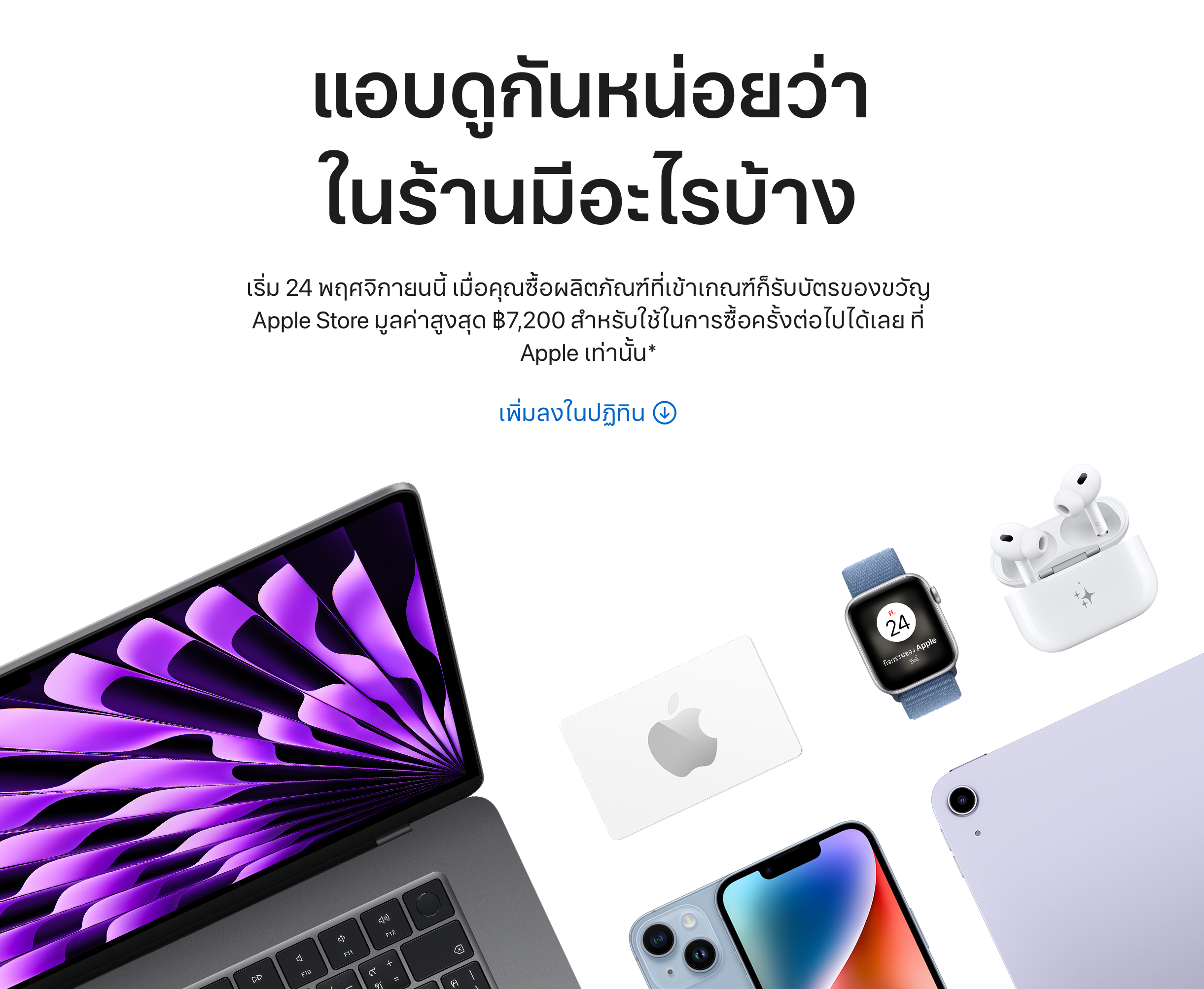 ข้อมูลเพิ่มเติม : https://www.apple.com/th/shop/gifts/shopping-event