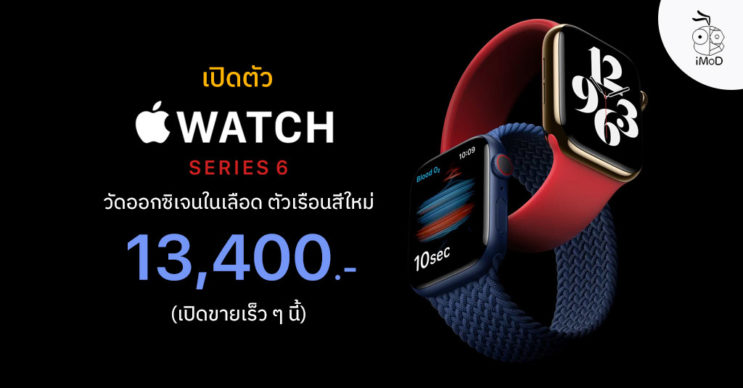 - Apple Watch Series 6 (รุ่น GPS) จะวางจำหน่ายในเร็วๆนี้ ในราคาเริ่มต้นที่ 13,400 บาท และ Apple Watch Series 6 (รุ่น GPS + Cellular) ราคาเริ่มต้นที่ 16,900 บาท