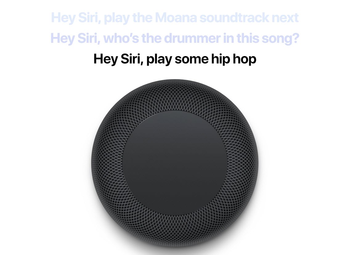 Apple ได้เปิดตัวสินค้าใหม่ ชื่อว่า HomePod เป็นลำโพงอัจฉริยะที่ฝัง Siri สามารถสั่งการเพื่อฟังเพลง รายงานข้อมูลต่างๆ และควบคุมอุปกรณ์ภายในบ้านได้