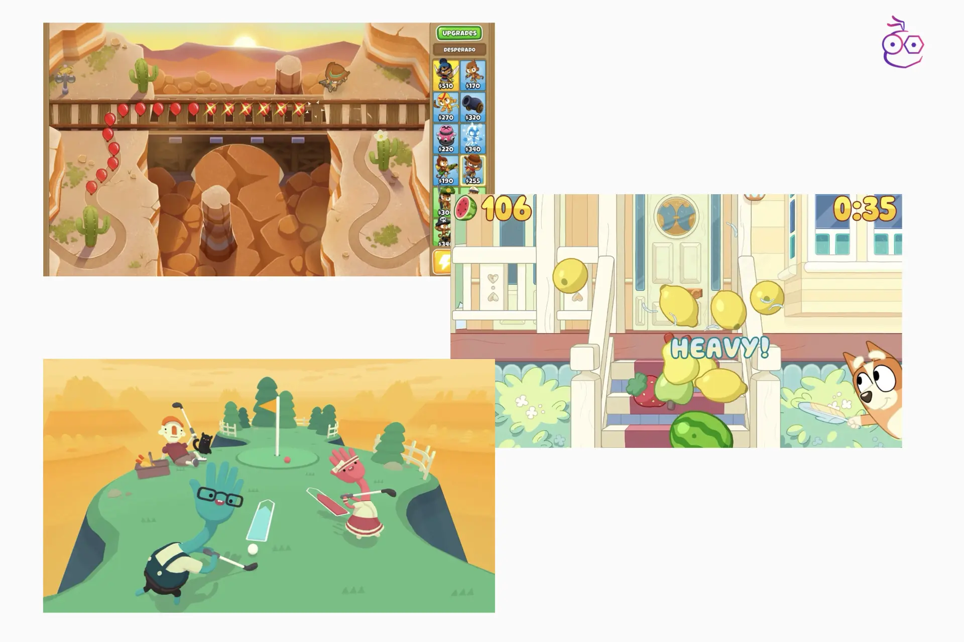- Fruit Ninja Classic+ โดย Halfbrick Studios: ในวันที่ 19 มิถุนายน Bluey จะมาปรากฏตัวใน Fruit Ninja Classic+ ภายในระยะเวลาจำกัดระหว่างกิจกรรมร่วมมือสุดพิเศษบน Apple Arcade โดยจะมีคทา พลังคทา ดาบ และรายละเอียดลับธีม Bluey พิเศษที่ผู้เล่นทุกช่วงอายุจะได้ฟันผลไม้และปลดล็อครางวัลสุดพิเศษ