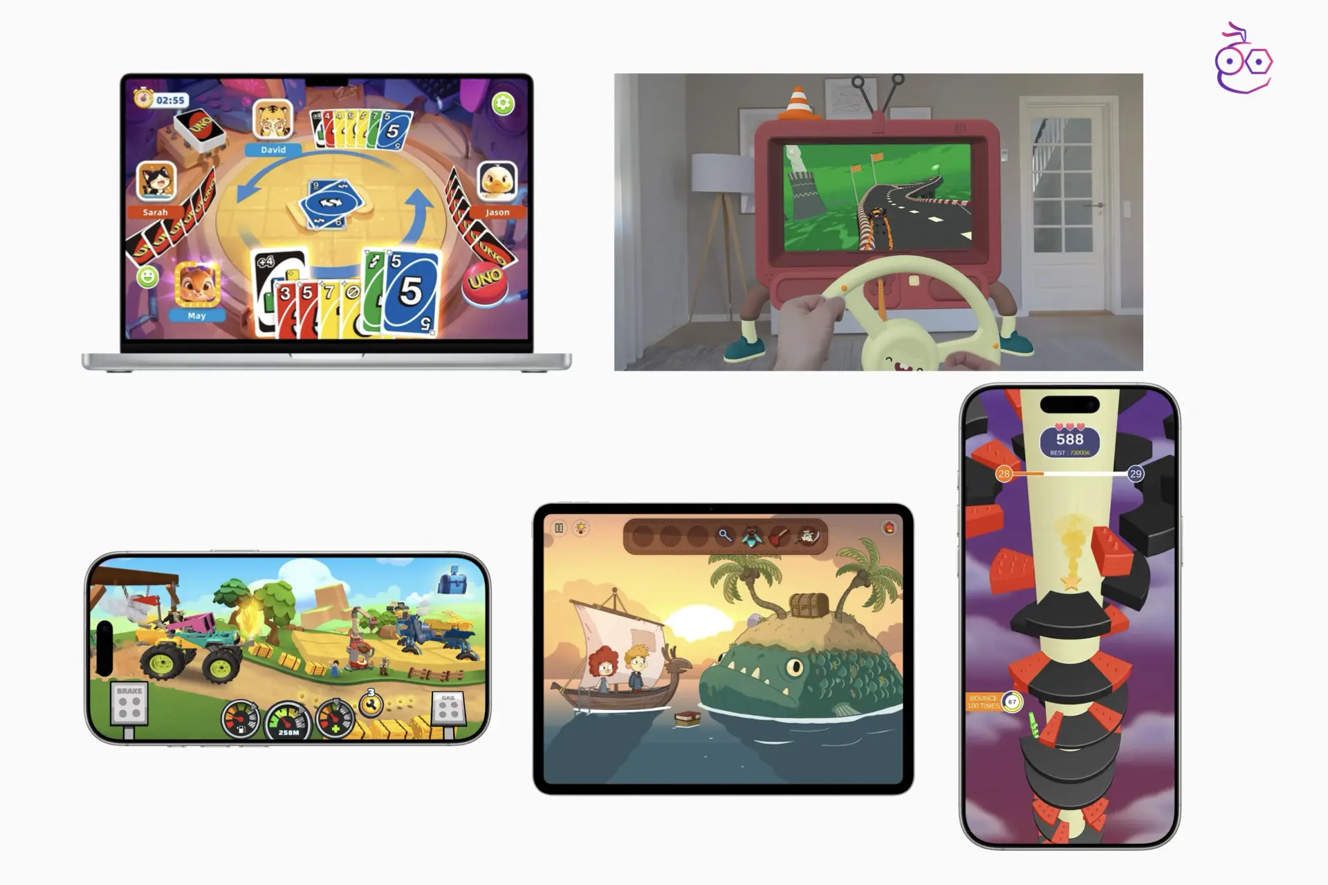 เกมใหม่ๆ กำลังจะมาช่วยขยายแค็ตตาล็อกที่มีหลากหลายไดนามิกกว่า 200 เกมบน Apple Arcade โดยไม่มีโฆษณาหรือการซื้อภายในแอป ในวันนี้เกม UNO แบบคลาสสิกจาก Mattel ในรูปแบบใหม่พร้อมให้เล่นแล้ว UNO: Arcade Edition ตัวเกมมีทั้งหมด 3 โหมดที่แฟนๆ สามารถเลือกเล่นได้ทั้งแบบคนเดียวโดยใช้กฎการเล่น UNO แบบเดิมในโหมดเล่นคนเดียว หรือเล่นกับคนอื่นได้ในโหมดแข่งขันแบบรวดเร็ว หรือเพิ่มความท้าทายได้ในเกมแบบกำหนดเองที่มีลูกเล่นพิเศษ เช่น Wild Swap Hands และ Color Showdown และยังมีเกมที่เปิดตัววันนี้เช่นกันคือ: WHAT THE CAR? สำหรับ Apple Vision Pro, ซึ่งเป็นการนำเกมที่ชนะรางวัล 2024 D.I.C.E. Awards ในสาขาเกมบนอุปกรณ์เคลื่อนที่แห่งปีมาดัดแปลงให้เหมือนจริง, เกมแข่งขันอิงตามกฎฟิลิกส์ LEGO Hill Climb Adventures+ เกมแบบอินเทอร์แอ็คทีฟแสนสนุก Lost in Play+ และเกมอาร์เขด 3 มิติยอดนิยม Helix Jump+