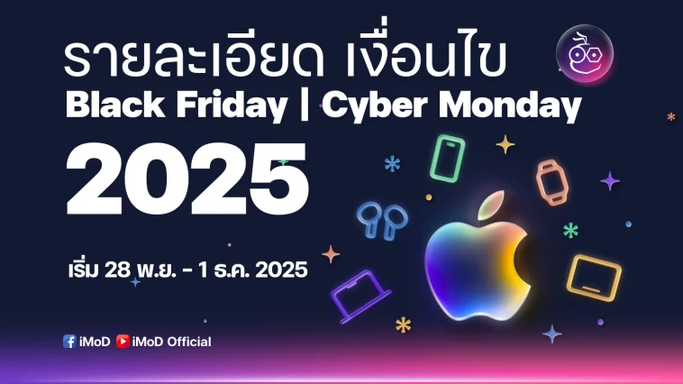 เริ่มแล้วสำหรับกิจกรรม Apple Black Friday | Cyber Monday ปี 2025 ที่ให้ผู้ซื้อสินค้าเข้าเกณฑ์ได้รับบัตรของขวัญ Apple Store มูลค่าสูงสุด 8,500 บาท รายละเอียดเงื่อนไขเป็นอย่างไร ดูได้ที่นี่