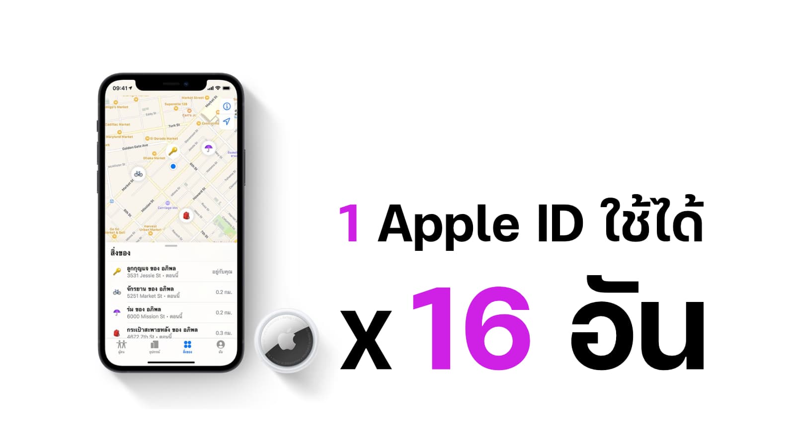 Apple ID หนึ่งบัญชีเชื่อมต่อ AirTag ได้สูงสุด 16 อัน