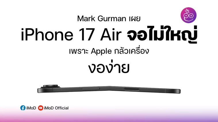 Mark Gurman รายงานว่า Apple เคยสร้างต้นแบบ iPhone 17 Air รุ่นจอใหญ่ 6.9″ และเครื่องบาง แต่ล้มเลิกไปเพราะตัวเครื่องงอง่าย