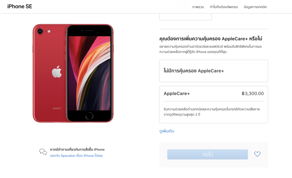 Apple Care+ สำหรับ iPhone SE รุ่นที่ 2 ใหม่ ซื้อเพิ่มเพียง 3,300 บาท