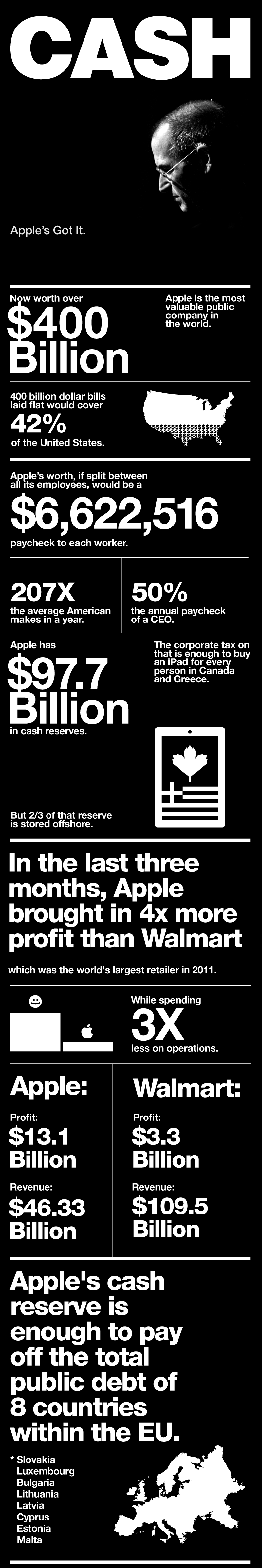 แฟน ๆ iPM คงทราบดีว่าจากผลประกอบการไตรมาศที่ 1 ปี 2012 Apple สร้างผลกำไรเข้าคลังอีกประมาณ 1.3 หมื่นล้านเหรียญสหรัฐ ทำให้ตอนนี้ Apple มีเงินสดอยู่ในมือประมาณ 1 แสนล้านดอลลาร์ โดยไม่มีหนี้เลย 😐 ลองมาดูกันคร่าว ๆ ว่าเงินจำนวนนี้มีความสำคัญอย่างไรบ้างคับ