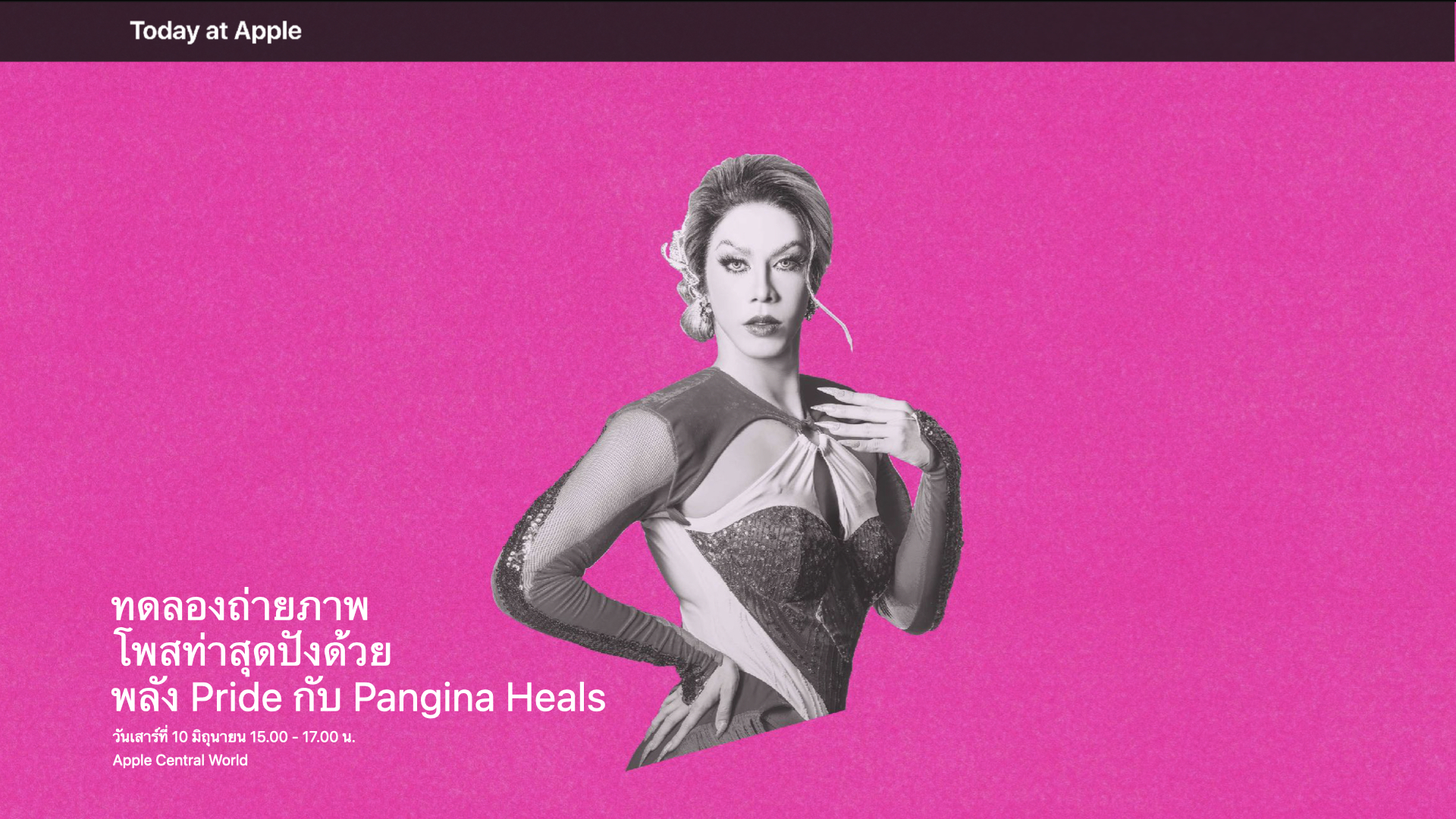 Apple ชวนทุกคนร่วมฉลองในเทศกาล Pride Month กับ Pan Pan แดร็กควีนชื่อดังระดับโลก พร้อมเทคนิคการโพสต์ท่าสุดปัง ที่ Apple Central World ลงทะเบียนฟรี!