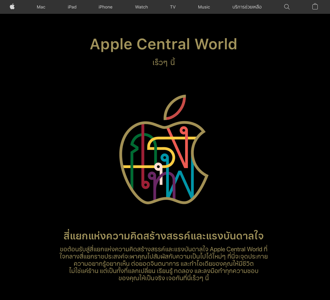 Apple ได้ขึ้นข้อมูลบนเว็บไซต์ประกาศยืนยันการมาของ Apple Central World, Apple Store แห่งที่ 2 ในไทย และเผยว่าจะเปิดทำการเร็ว ๆ นี้