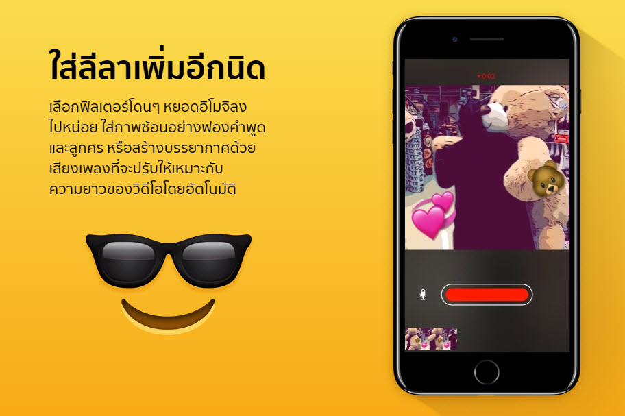 แน่นอนว่าคุณสมบัติการใส่ข้อความ เอฟเฟ็กต์ กราฟิกต่างๆ ต้องมีอยู่ในแอปบันทึกวิดีโอ โดยในแอป Clips สามารถใส่ emoji, ฟองคำพูด, ลูกศรและเพลงระหว่างการอัดวิดีโอหรือเลือกวิดีโอจากคลังมาตกแต่งได้