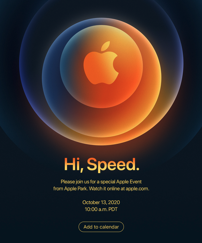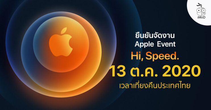 Apple ประกาศจัดงาน Apple Event 2020 แบบเสมือนชื่อ “Hi, Speed.” โดยเป็นรูปแบบการจัดงานผ่านช่องแบบออนไลน์ถ่ายทอดจาก Apple Park ในวันที่ 13 ต.ค. 2020 เวลา 10.00 น. ตามเวลาท้องถิ่น หรือ 0.00 น. ของ 14 ต.ค. 2020 (คืนวันที่ 13 ต.ค. 2020 ย่างเข้าวันที่ 14) ตามเวลาประเทศไทย
