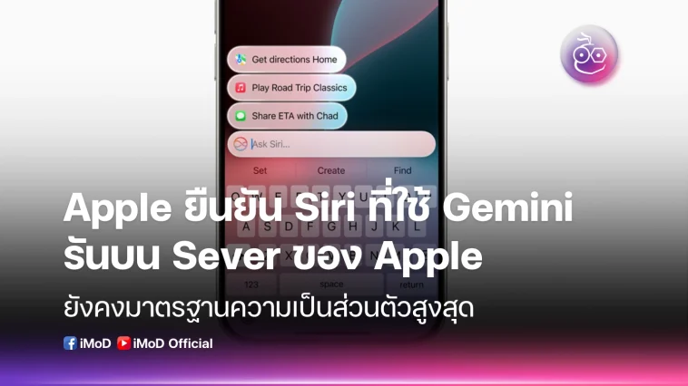 Apple ยืนยันว่า Siri รุ่นใหม่ที่ขับเคลื่อนด้วย Gemini จะทำงานผ่านระบบ Private Cloud Compute พร้อมเน้นความร่วมมือกับ Google โดยยังคงมาตรฐานความเป็นส่วนตัวสูงสุดตามแนวทางของบริษัท
