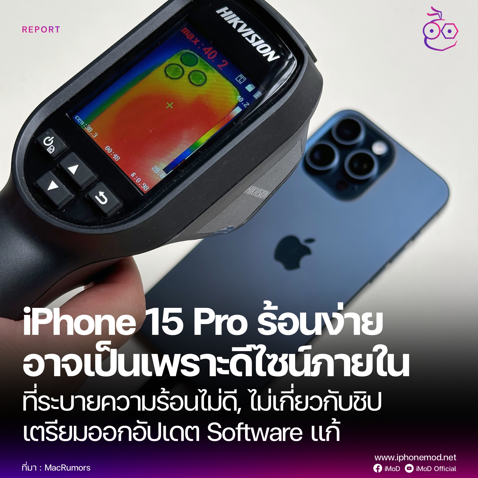 กูรูหลายเจ้าเผยว่า กรอบไทเทเนียมและดีไซน์ภายในตัวเครื่องเป็นเหตุสำคัญที่ทำให้ iPhone 15 Pro, 15 Pro Max ร้อนเร็วกว่าปกติ เพราะการใช้วัสดุไทเทเนียมและการปรับดีไซน์ภายในใหม่ ทำให้ตัวเครื่องระบายความร้อนไม่ดี ทำให้เครื่องร้อนเร็วขึ้น