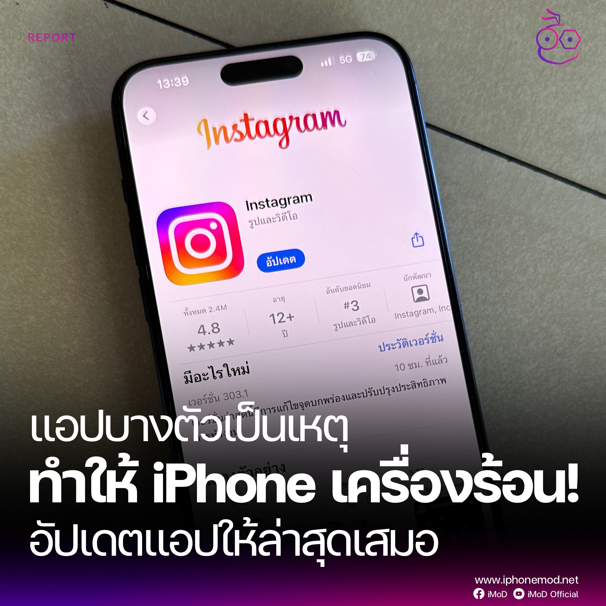โดยหนึ่งสาเหตุที่ทำให้ iPhone เครื่องร้อนไวมาจากการทำงานของ CPU ที่มากเกินไปในแอป Third-party บางแอป เช่น Asphalt 9, Instagram, และ Uber
