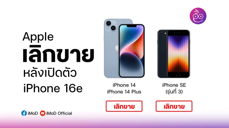 19 ก.พ. 68 Apple เปิดตัว iPhone 16e พร้อมเลิกขาย iPhone รุ่นเก่า ดังนี้