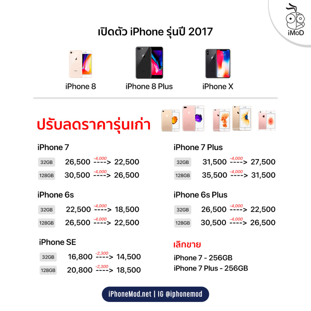หลังเปิดตัว iPhone 8 iPhone 8, iPhone 8 Plus และ iPhone X วันที่ 11 กันยายน 2017 ทาง Apple ก็ได้ปรับลดราคา iPhone รุ่นก่อนหน้า ซึ่งมีผลทันทีหลังจากประกาศเปิดตัว iPhone รุ่นใหม่ปี 2017 รุ่นที่ถูกปรับลดราคา ได้แก่