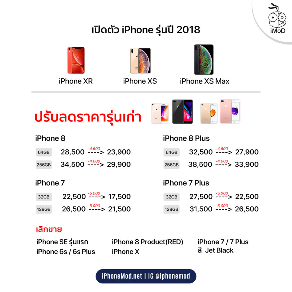 Apple ได้เปิดตัว iPhone XR, iPhone XS และ iPhone XS Max ในวันที่ 12 กันยายน 2018 และมีการปรับลดราคา iPhone รุ่นก่อนหน้าทันทีหลังประกาศเปิดตัว รุ่นที่ปรับลดในปีนั้น ได้แก่