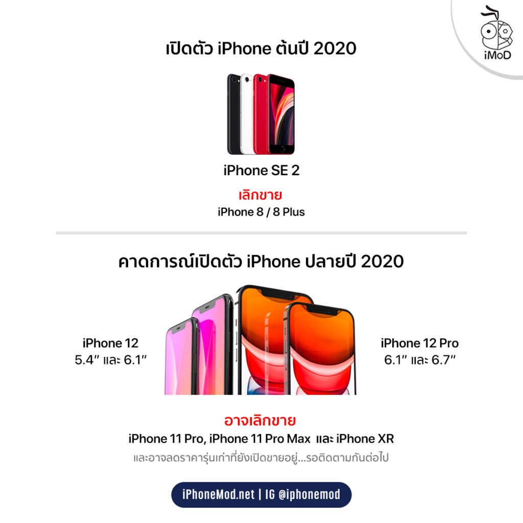 ในปี 2020 ทาง Apple ได้ประกาศจัดงาน Apple Event ในวันที่ 15 กันยายนนี้ ซึ่งคาดว่าน่าจะเปิดตัว iPhone 12 ด้วย ถ้าหากมีการเปิดตัว iPhone 12 รุ่นใหม่ คาดการณ์ว่าอาจจะ iPhone บางรุ่นถูกเลิกขาย คาดการณ์ว่า iPhone 11 Pro, iPhone 11 Pro Max และ iPhone XR อาจจะถูกเลิกขายหลังประกาศเปิดตัว iPhone รุ่นใหม่ [ชมเหตุผลเพิ่มเติม]