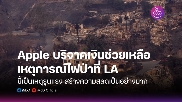 สืบเนื่องจากเหตุการณ์ไฟป่าที่ลุกลามสร้างความเสียหายในลอสแองเจลิส รัฐแคลิฟอร์เนีย สหรัฐอเมริกา มีรายงานว่า Apple ได้บริจาคเงินช่วยเหลือ