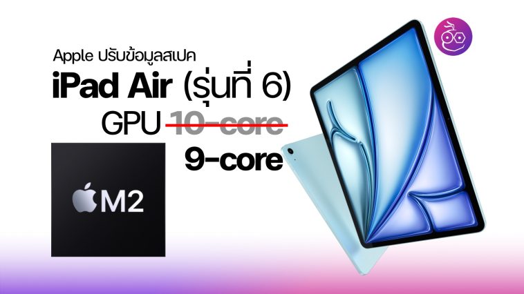 Apple ได้ปรับข้อมูลสเปค GPU ของ iPad Air (รุ่นที่ 6) ชิป M2 หน้าเว็บไซต์ใหม่ ปรับเหลือ 9-core จากเดิมระบุไว้ว่า 10-core