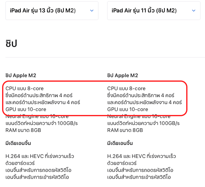 *Apple แก้ไขข้อมูลในหน้าสเปค iPad Air (รุ่นที่ 6) ชิป M2 ที่เว็บไซต์ Apple ในสหรัฐ แต่ยังไม่ได้แก้ไขที่ Press Release ใน Newsroom