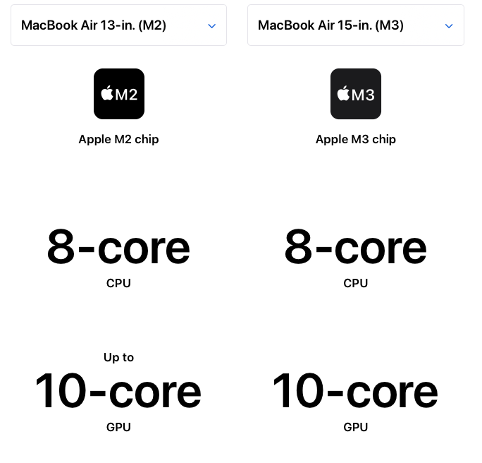 แต่เมื่อวันที่ 1 มิ.ย. 2024 ที่ผ่านมา, Apple ได้ปรับข้อมูลสเปค iPad Air (รุ่นที่ 6) ชิป M2 ที่เว็บไซต์ Apple ในสหรัฐ โดยทั้งรุ่น 11″, 13″ มาพร้อม CPU 8-core และ GPU 9-core เหมือนกัน