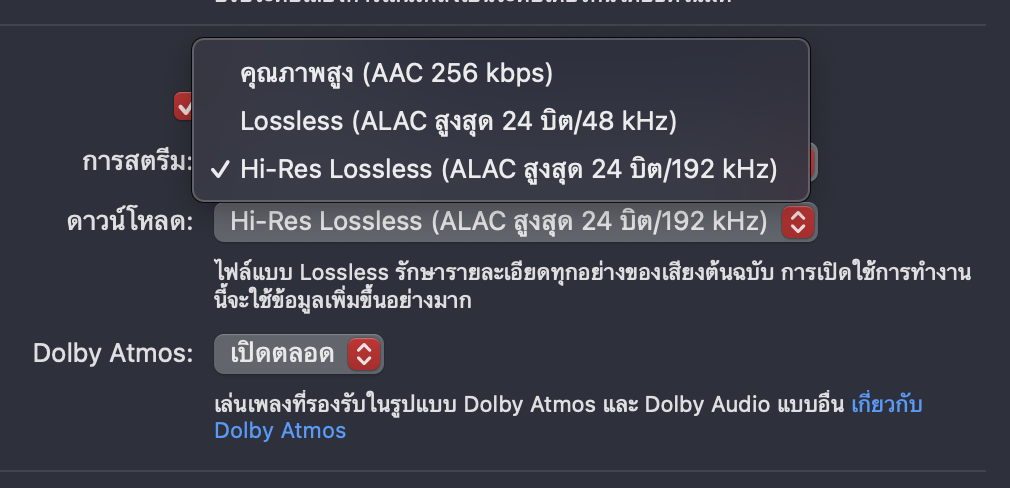 *Lossless ใน Apple Music นั้นเป็นแบบ 24-bit/48 KHz ส่วน High-res Lossless สูงสุดที่ 192 KHz โดยหากจะฟังเสียงด้วยคุณสมบัติ Lossless ต้องใช้หูฟังที่มีสายคู่กับหัวแปลง digital-to-analog