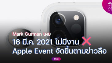 ก่อนหน้านี้เคยมีข่าวลือว่า Apple อาจจัดงานเปิดตัวสินค้าใหม่วันที่ 16 มี.ค. 2021 นี้ แต่ Mark Gurman เผยว่าไม่ใช่วันดังกล่าว แต่ไม่ได้ระบุว่าจะมีงาน Event หรือไม่ หรืออาจมี แต่เป็นวันอื่น