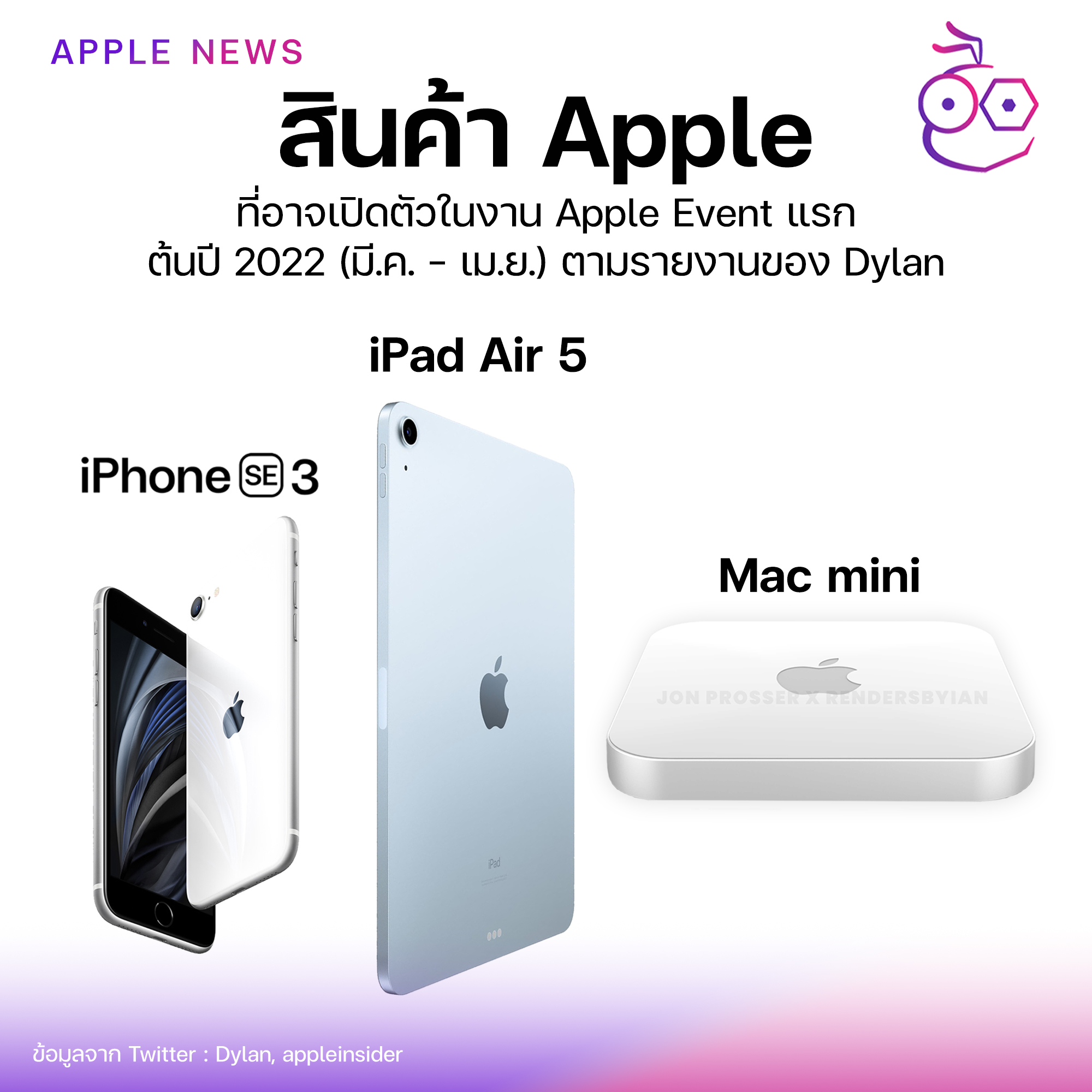 Mark Gurman เผย Apple อาจจัดงาน Event เปิดตัวสินค้าใหม่ 8 มี.ค. 2022 นี้ คาดว่าเปิดตัว iPhone SE 3, iPad Air 5 และอื่น ๆ