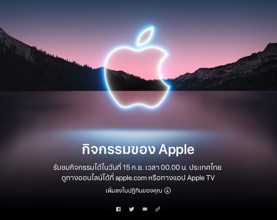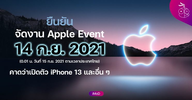 สำหรับงาน Apple Event  จัดขึ้นในวันที่ 14 ก.ย. 2021 นี้ เวลา 10.00 น. ตามเวลาท้องถิ่น หรือ 0.01 น. วันที่ วันที่ 15 ก.ย. 2021 นี้ ตามเวลาประเทศไทย