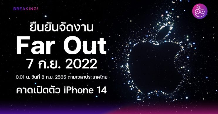 Apple ได้ประกาศจัดงาน Event “Far Out” วันที่ 7 ก.ย. หรือวันที่ 8 ก.ย. 65 ตามเวลาประเทศไทย ในงานคาดเปิดตัว iPhone 14 และอื่น ๆ