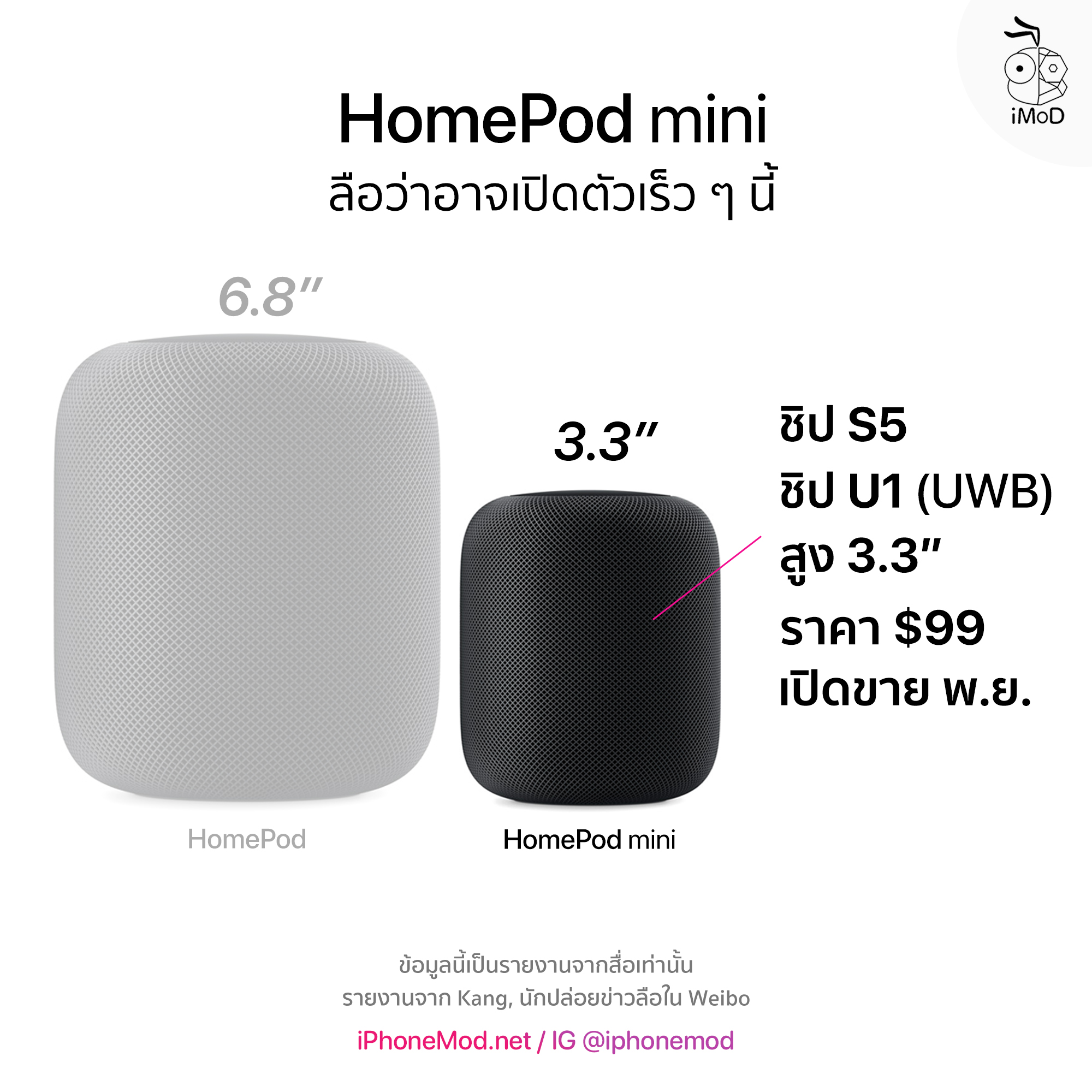 สำหรับราคาเปิดขายนั้น HomePod mini อาจขายเพียง 99 ดอลลาร์ เท่านั้น