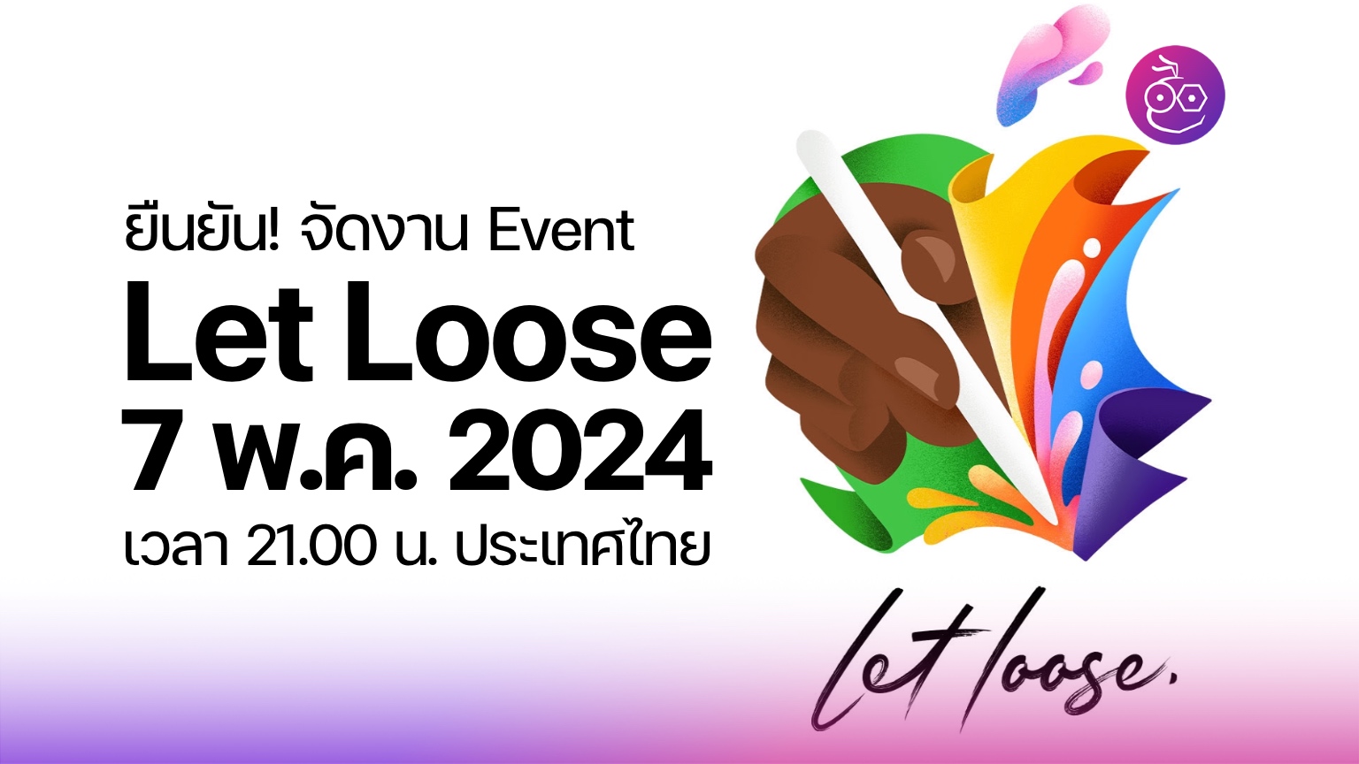 “Let Loose” มีกำหนดจัดขึ้นวันที่ 7 พ.ค. 2024 เวลา 21.00 น. ประเทศไทย โดยคาดว่าจะเปิดตัว iPad Pro, iPad Air, Apple Pencil และ Magic Keyboard ใหม่