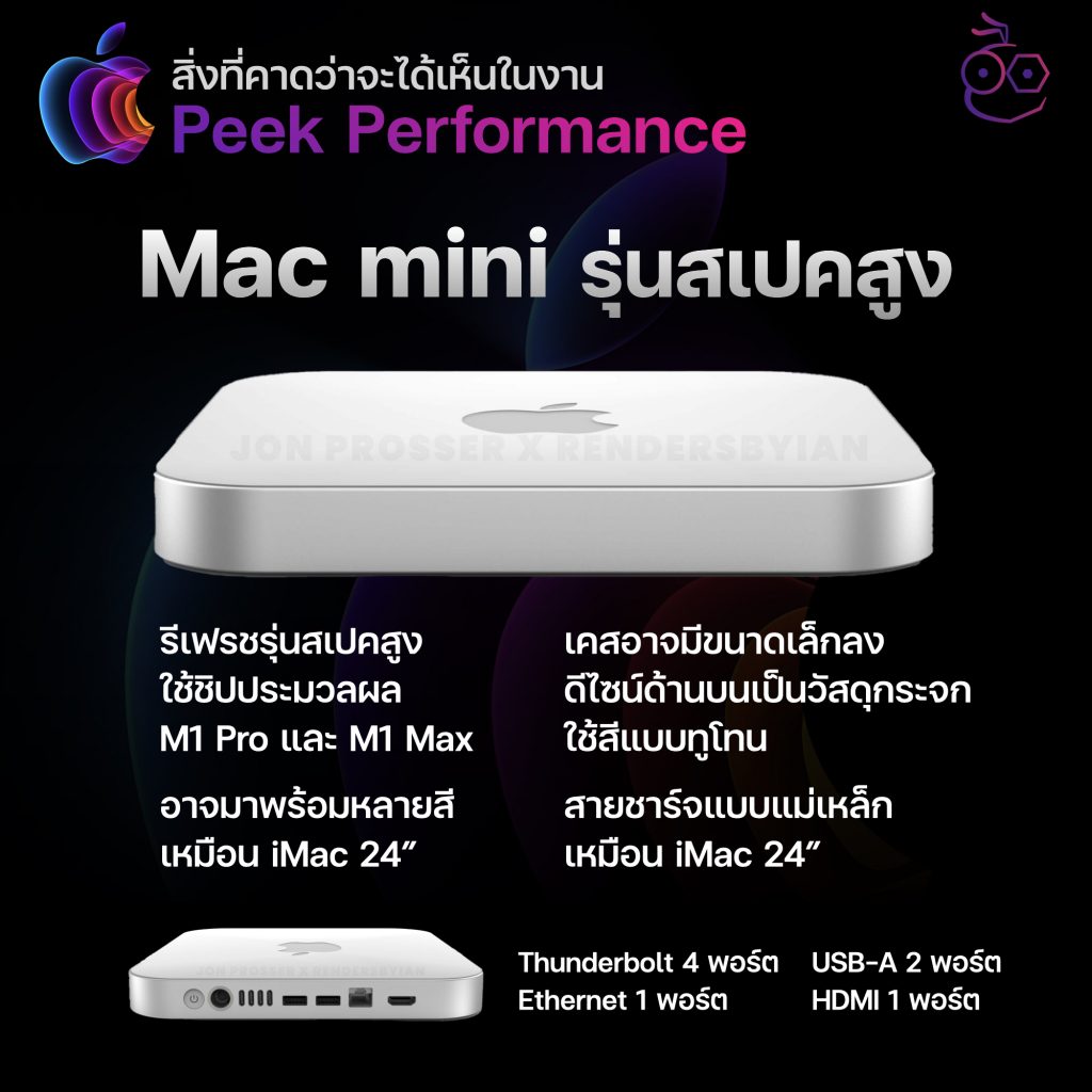ปี 2020 ทาง Apple ได้เปิดตัว Mac mini รุ่นทั่วไปที่มาพร้อมกับชิป M1 และในปี 2022 นี้ คาดว่าจะถึงเวลาของการอัปเกรด Mac mini รุ่นสเปคสูงบ้าง (อัปเกรดล่าสุดในปี 2018) โดยครั้งนี้ คาดว่าจะใช้ชิประดับโปรอย่าง M1 Pro และ M1 Max