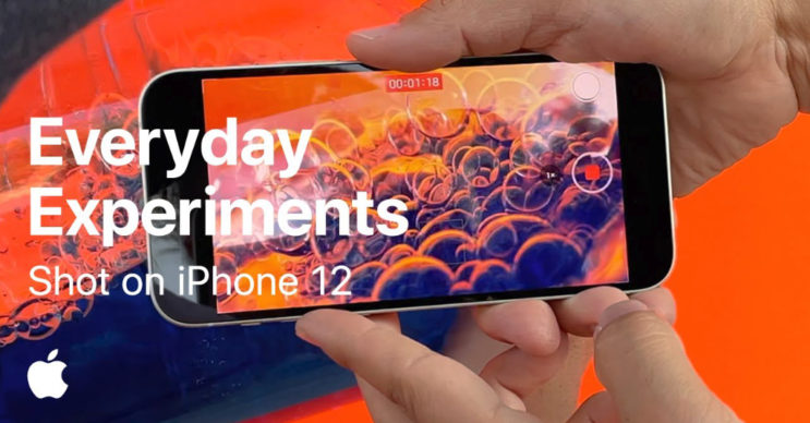 Apple แชร์วิดีโอการทดลองที่ชื่อ “Shot on iPhone 12 — Everyday Experiments. Get creative at home.” ที่สอนการถ่ายรูปและวิดีโอให้ออกมาแบบครีเอท โดยใช้อุปกรณ์ที่สามารถหาได้ภายในบ้านมาสร้างสรรค์รูปและวิดีโอให้น่าสนใจด้วยกล้องของ iPhone 12