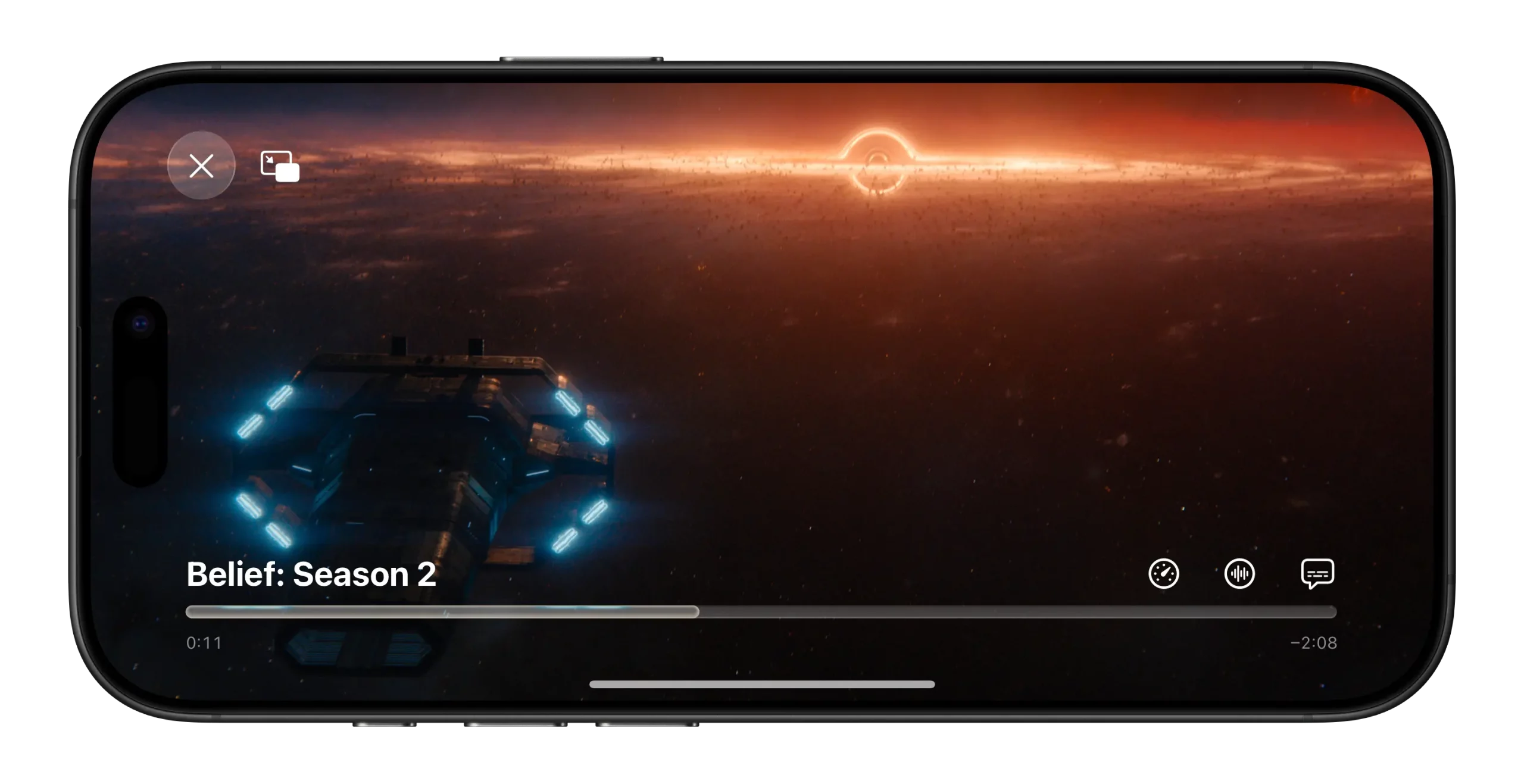 De With ได้เผยภาพตัวอย่างหน้าจอการดูวิดีโอ ที่ตัวปุ่มควบคุม จะดูเหมือนลอยขึ้นมาจากเนื้อหา ไอคอนจะสะท้อนแบบ Dynamic เมื่อผู้ใช้แตะหน้าจอเพื่อควบคุมหน้าจอ