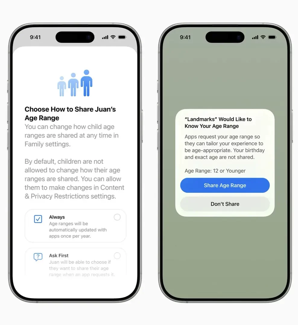 Apple แสดงข้อมูลการจัดระดับอายุของแต่ละแอปบน App Store มาอย่างยาวนาน โดยอิงจากข้อมูลที่นักพัฒนาระบุไว้ เพื่อช่วยให้ผู้ใช้ตัดสินใจได้ว่าแอปนั้นเหมาะสมกับเด็กหรือไม่ การจัดระดับอายุเหล่านี้ถูกรวมไว้ในระบบปฏิบัติการของ Apple ทั้งหมด และทำงานร่วมกับคุณสมบัติการควบคุมโดยผู้ปกครอง เช่น เวลาหน้าจอและขออนุญาตซื้อได้อย่างราบรื่น