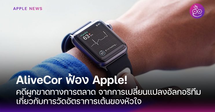ก่อนหน้านี้ AliveCor ได้ยื่นฟ้อง Apple เรื่องการละเมิดสิทธิบัตรหลายคดี โดยกล่าวหาว่า Apple ลอกเลียนแบบเทคโนโลยีการตรวจหาและวิคราะห์หัวใจของ AliveCor นำคุณสมบัติ ECG มาใช้กับ Apple Watch