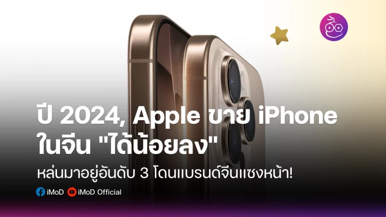 Counterpoint Research รายงานข้อมูลว่า ปี 2024 ที่ผ่านมา Apple ขาย iPhone ในจีนได้น้อยลง หล่นมาอยู่อันดับ 3 แบรนด์ขายดี ถูก Oppo, Hornor แซงหน้า