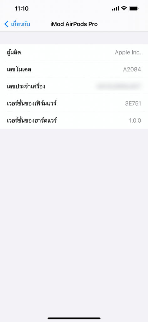 สามารถดูเลข Firmware ของ AirPods ได้ที่ การตั้งค่า > เกี่ยวกับ > AirPods > Firmware