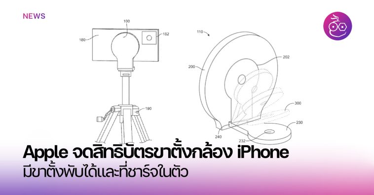 ผุดมาอีกหนึ่งสิทธิบัตรใหม่ของ Apple ที่น่าสนใจมาก ๆ เป็นขาตั้งกล้องที่มีที่ชาร์จในตัว ออกแบบมาเพื่อใช้กับ iPhone ที่มีกล้องระดับโปร