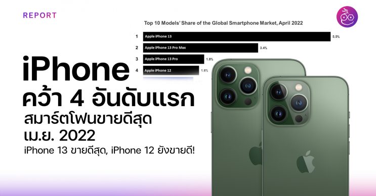 iPhone คว้า 4 อันดับแรก สมาร์ตโฟนขายดีที่สุด! เม.ย. 2022