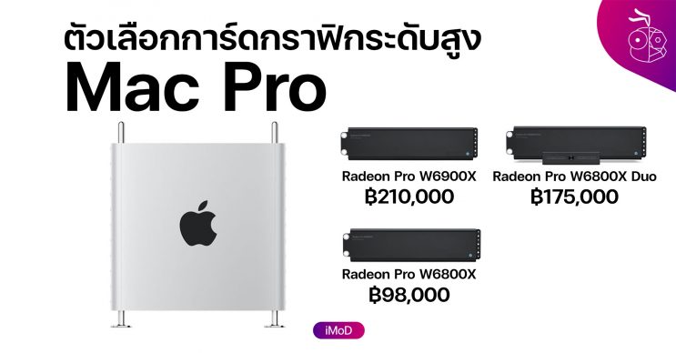 Appleไ ด้เพิ่มตัวเลือกการ์ดกราฟิกระดับสูงสำหรับ Mac Pro อย่าง AMD Radeon Pro W6800X, W6900X แบบเดี่ยวและแบบ Duo ซื้อพร้อม Mac Pro และมีขายแยกด้วย