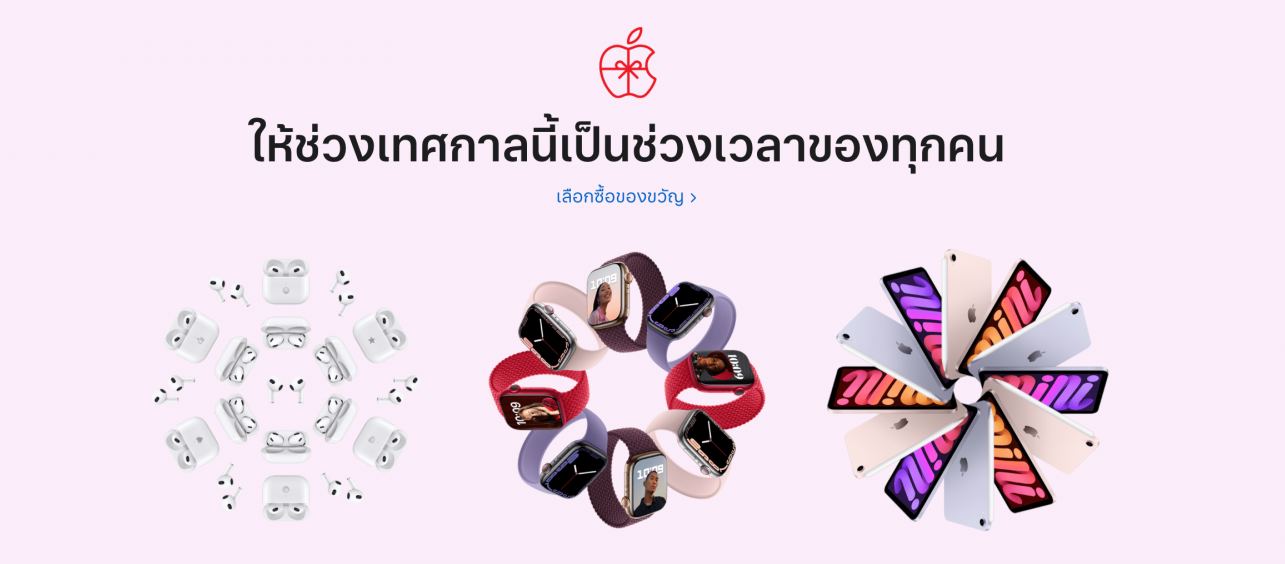 ด้วยคู่มือการซื้อของขวัญ เราจะสามารถค้นหาและเลือกซื้อกลุ่มผลิตภัณฑ์ล่าสุดของ Apple ทั้ง iPhone, iPad, Mac, Apple Watch, AirPods และอื่น ๆ เพื่อเป็นของขวัญได้ง่ายขึ้น