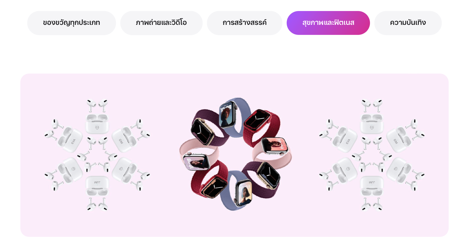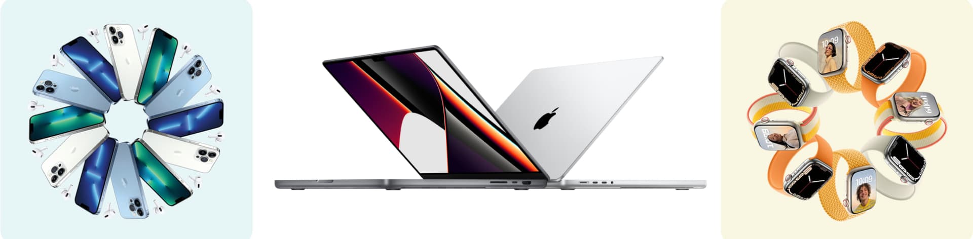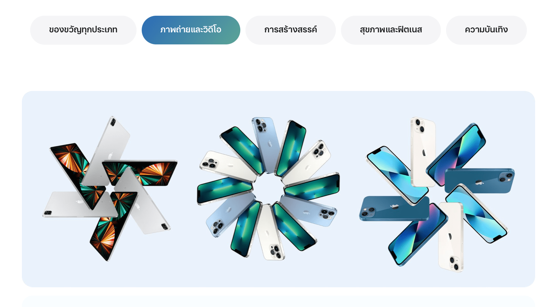- หรือจะเลือกซื้อสินค้าใหม่ ๆ สำหรับคนที่อยากตามเทรนด์ อย่าง iPhone 13, MacBook Pro ชิป M1 Pro และ M1 Max หรือจะเลือกซื้อ Apple Watch รุ่นใหม่ อย่าง Apple Watch Series 7 ก็ได้